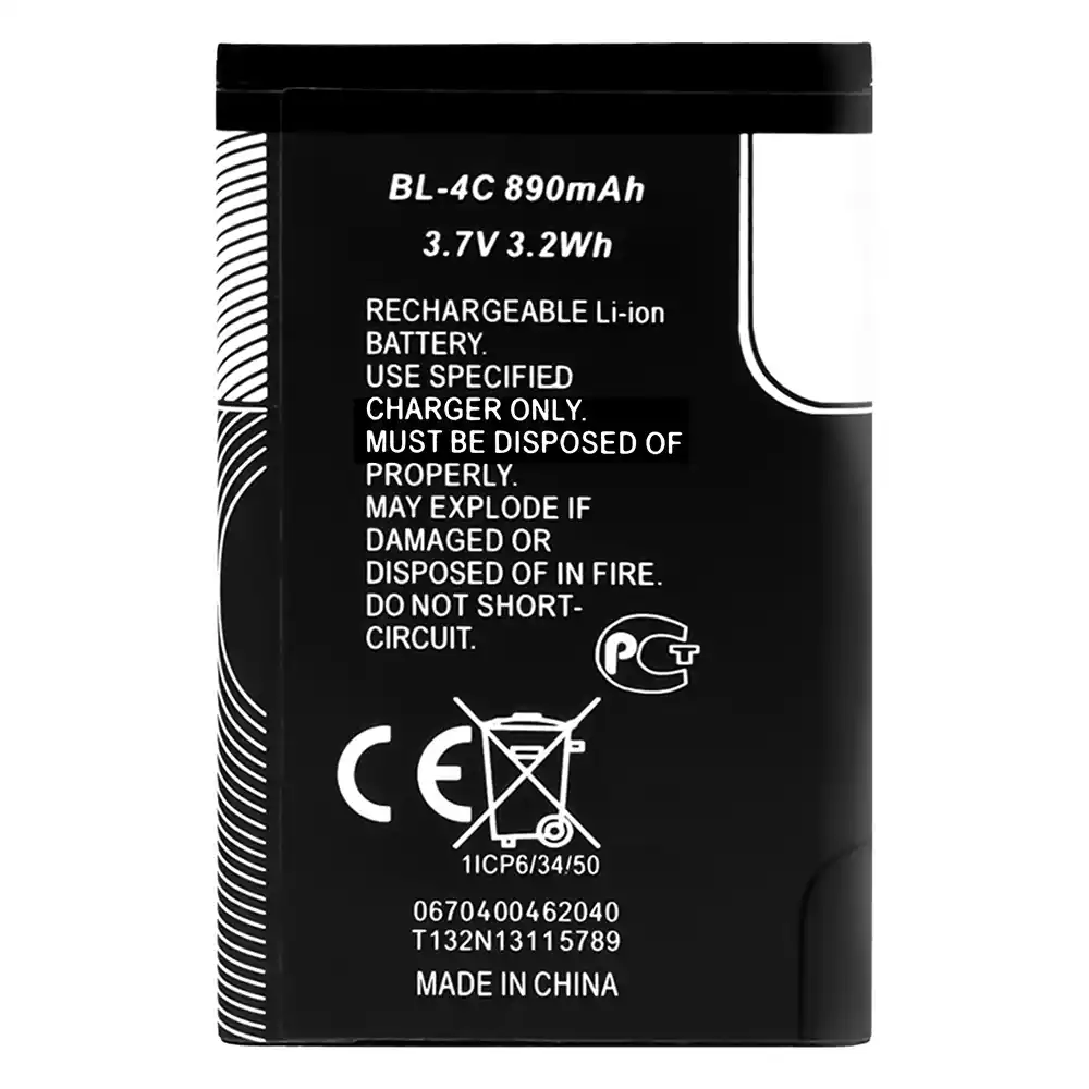 Modelo de batería BL-4C para Nokia 6260 / 6300 / 6131 / 3500c / C2-05 / 6700s / 7610 / 6101 / 6125 / 5100 /6170 / 6100 / 6102 / 7270 / 6103 / 7200 / X2-00 / 6133 / 6136 / 6301 /6300i / 7205 cdma