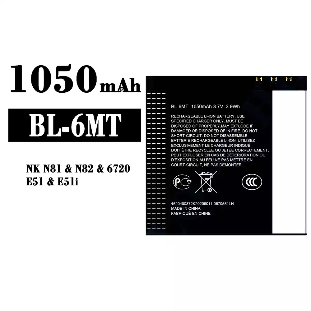 Modelo de batería BL-6MT para Nokia NK N81/N82/6720/E51/E51i