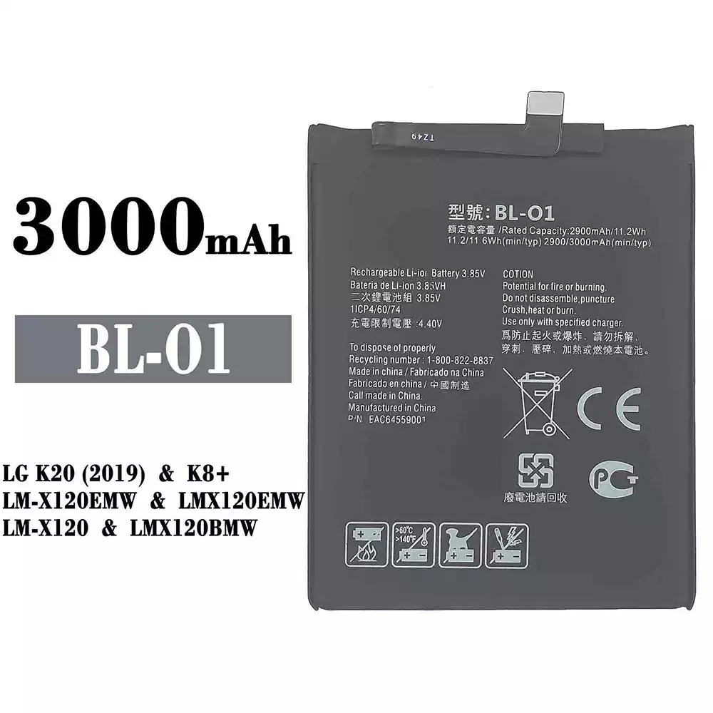 Modelo de batería BL-O1 para LG LG K20 (2019) / K8+ / LM-X120EMW / LMX120EMW / LM-X120 / LMX120BMW