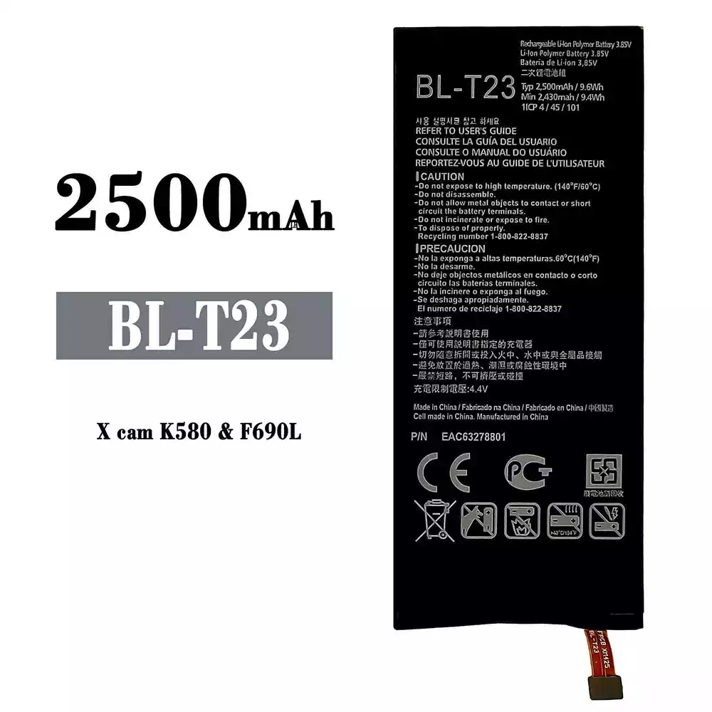Modelo de batería BL-T23 para LG X cam / K580 / F690L