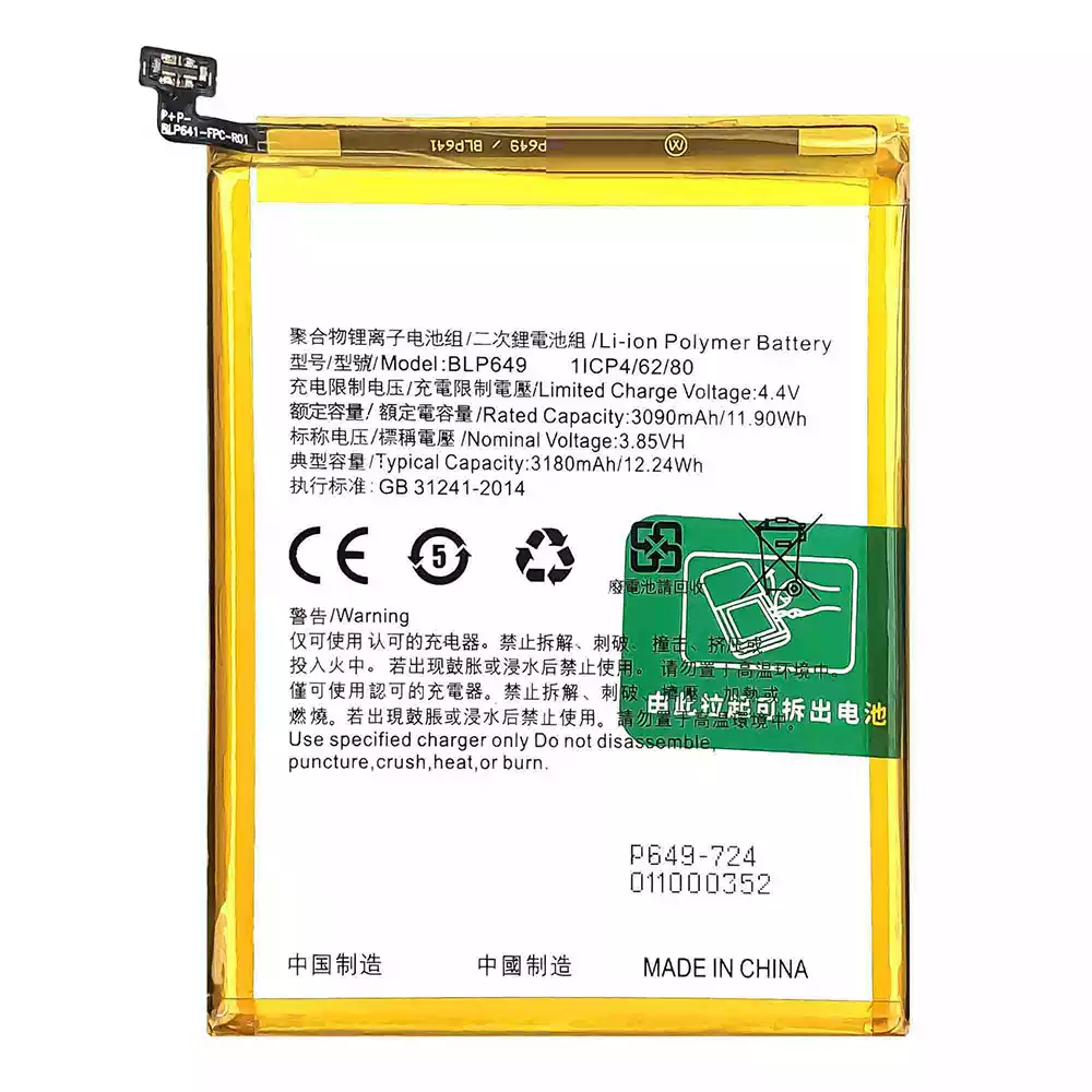 Modelo de batería BLP649 para OPPO A83 / CPH1729 / A1 / F5 Lite / A83T