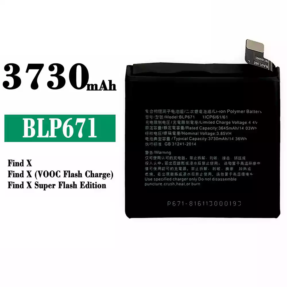 Modelo de batería BLP671 para OPPO Find X / Find X(VOOC Flash Charge) / Find X Super Flash Edition