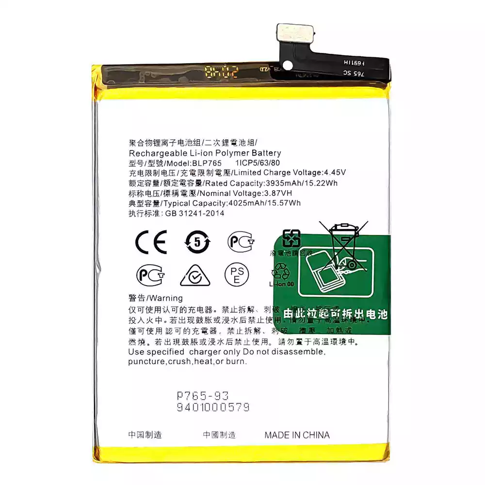 Modelo de batería BLP765 para OPPO Reno 3(Non Pro) / Reno 3A / A91 / CPH2001 / CPH2021 / PCPM00 / F15-2020