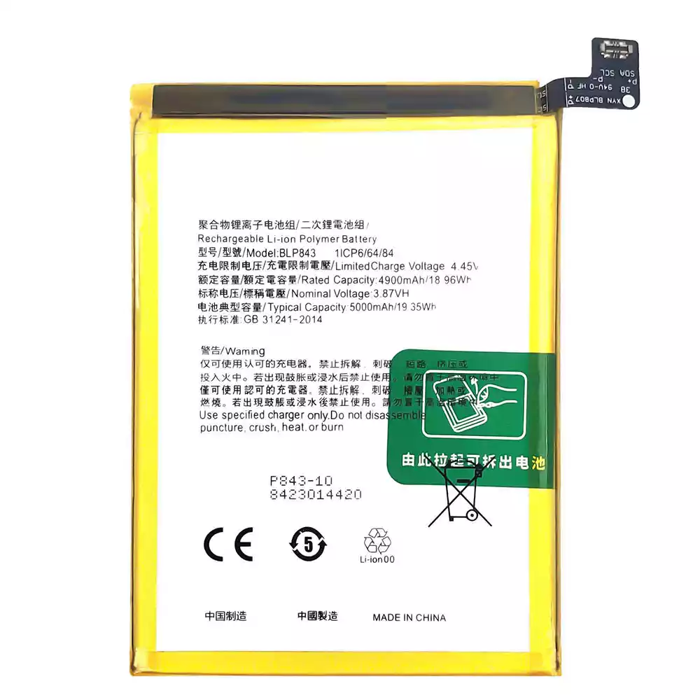 Modelo de batería BLP843 para OPPO K7X 5G