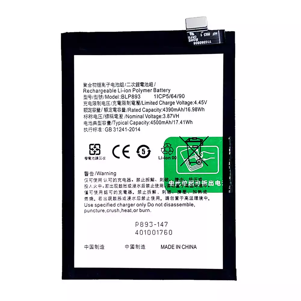 Modelo de batería BLP893 para OPPO Reno7 5G(China)