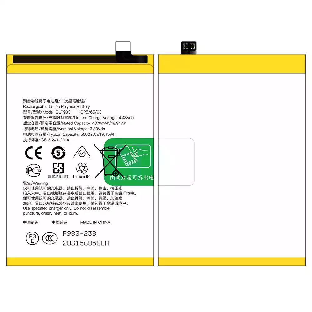 Modelo de batería BLP983 para OPPO Reno 10 Pro/ Reno 10 Pro 5G