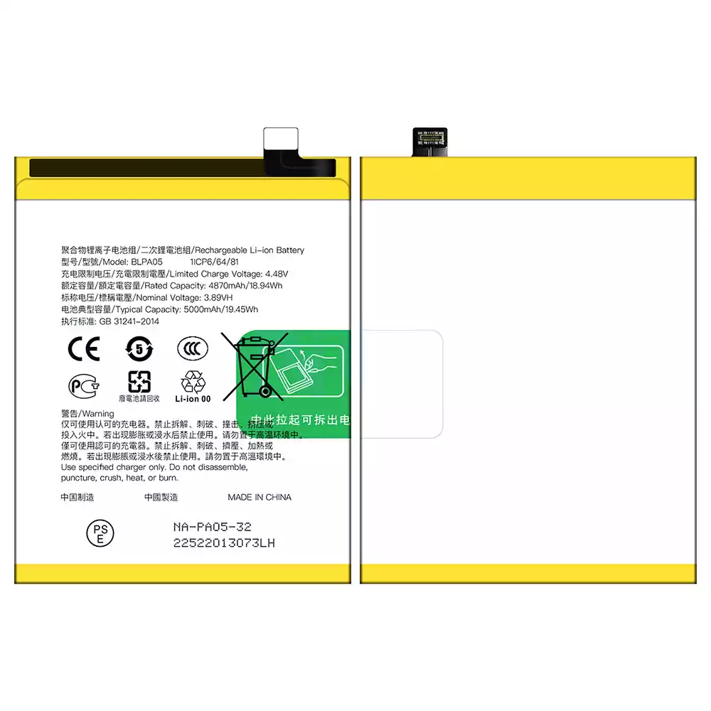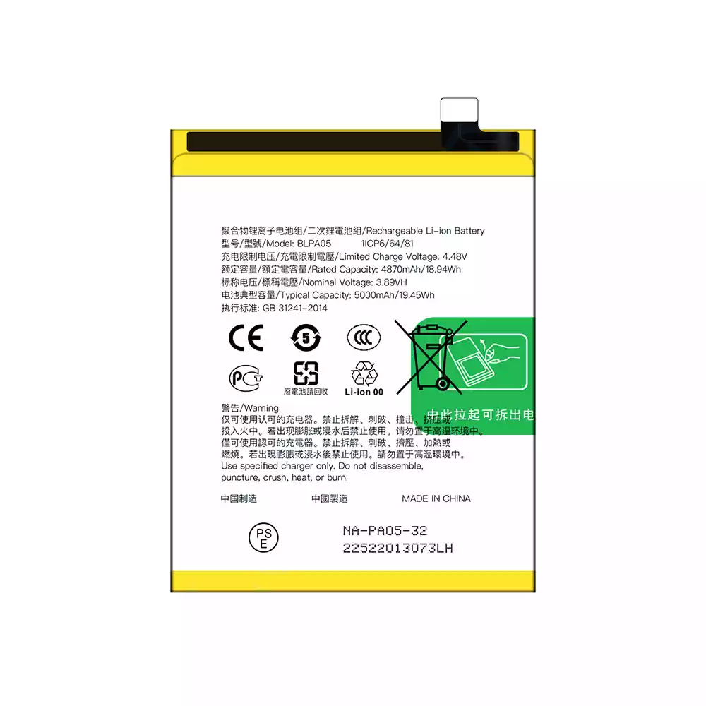 Modelo de batería BLPA05 para OPPO Reno 10 4G / Reno 10 Pro / A2 Pro