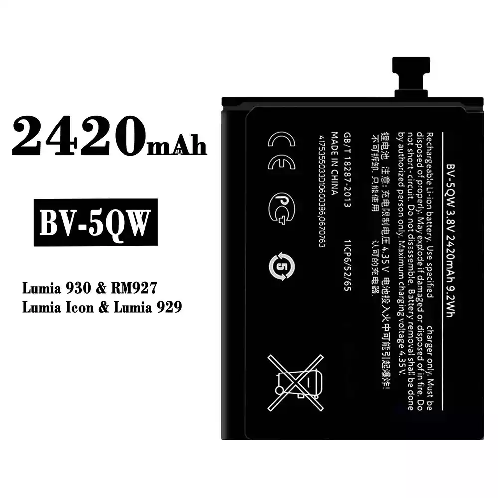 Modelo de batería BV-5QW para Nokia Lumia 930/RM927/Lumia Icon/Lumia 929