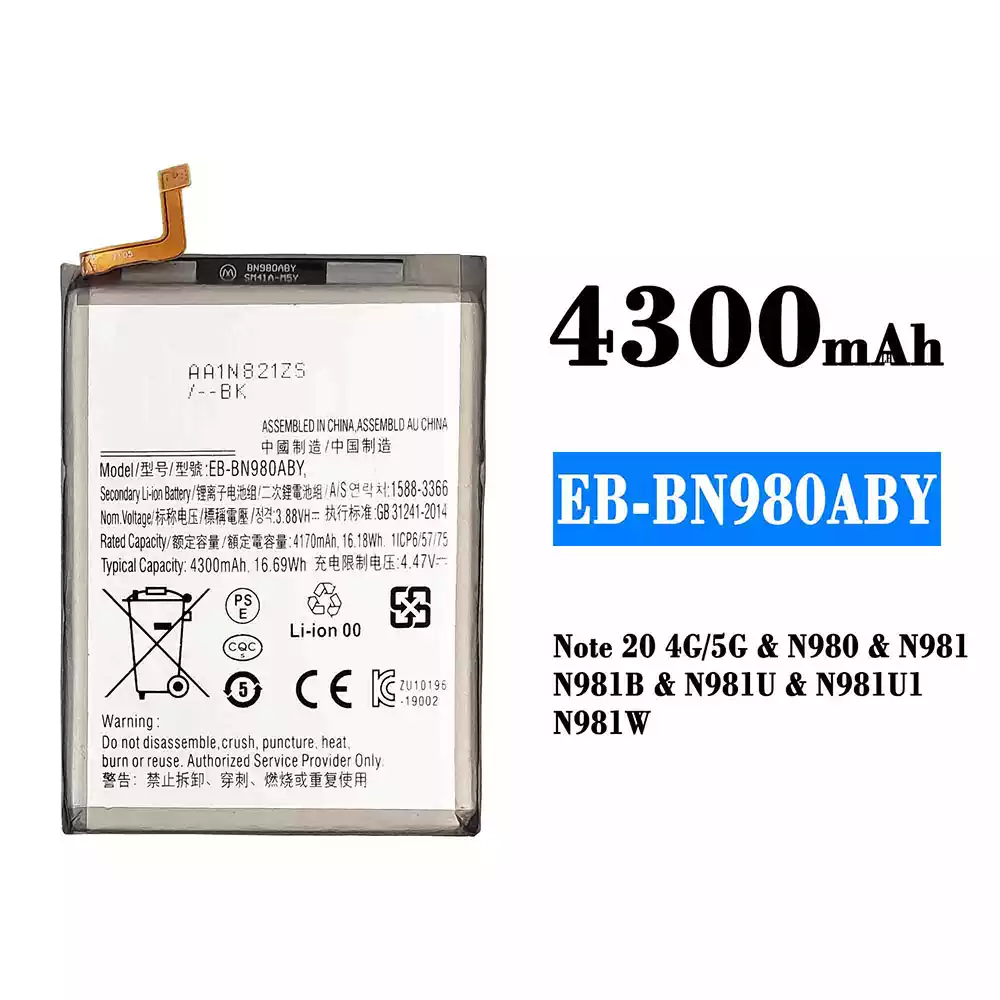 Modelo de batería EB-BN980ABY para Samsung Note 20 4G/Note 20 5G/N980/N981/N981B/N981U/N981U1/N981W