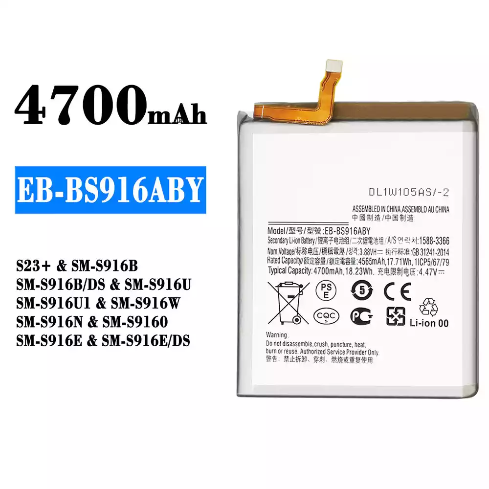 Modelo de batería EB-BS916ABY para Samsung S23+/SM-S916B/SM-S916B DS/SM-S916U/SM-S916U1/SM-S916W/SM-S916N/SM-S9160/SM-S916E/SM-S916E DS