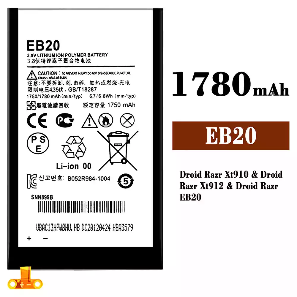 Modelo de batería EB20 para Motorola Droid Razr Xt910 / Droid Razr Xt912 / Droid Razr EB20