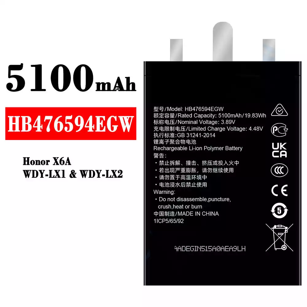 Modelo de batería HB476594EGW para HUAWEI Honor X6A / WDY-LX1 / WDY-LX2