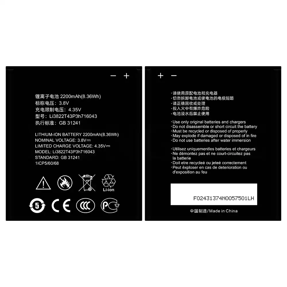 Modelo de batería Li3822T43P3h716043 para ZTE Blade A320/BA320