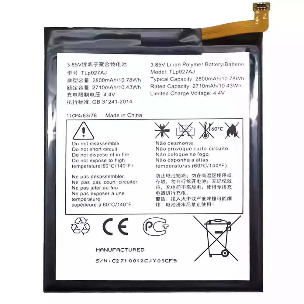 Modelo de batería TLP027AJ para Alcatel A5 LED/OT5085/5085I/5085Q/5085D